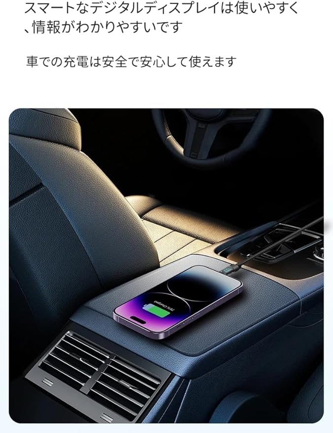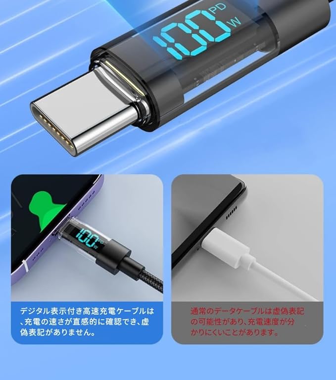 【LEDパワーデジタルディスプレイ】本製品を使えばLEDディスプレイ表示で充電状態が一目でわかります。電圧や電流のデジタルケーブルと比較し て、電力のデジタルは充電速度をより直接的にそして理解しや すいように教えてくれます。