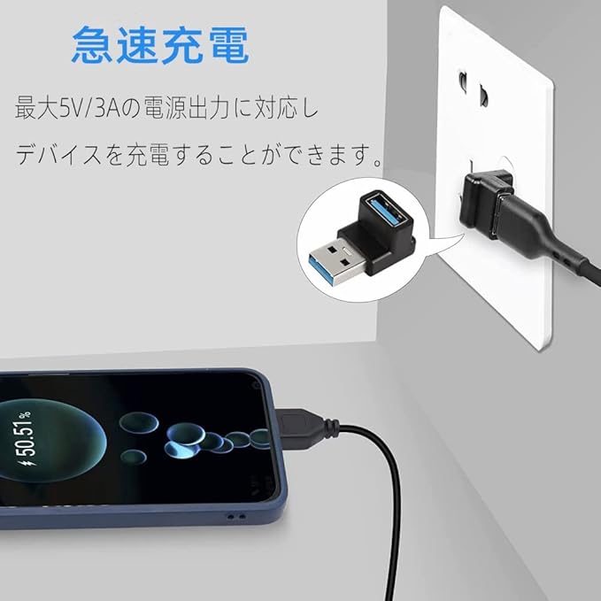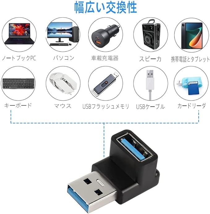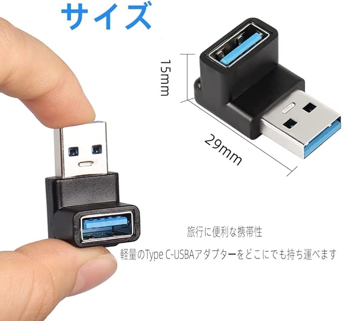 限定商品 USB 3.0 アダプタ L型 アダプタ 90度上向きタイプ USB 直角変換 USB Type A L字型変換アダプタ 小型 軽量 タイプA オス メス 10Gbps 高速データ伝送アダプタ 延長電源データ ビデオアダプター
