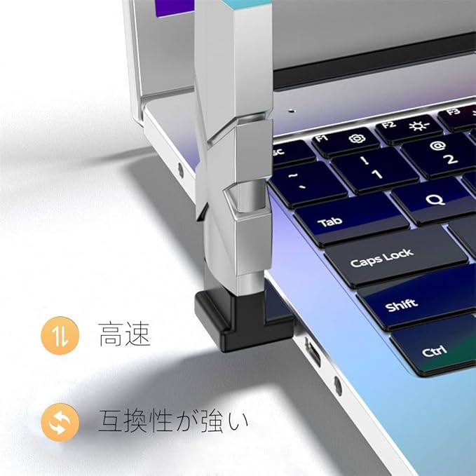 90直角設計を採用し、スペースを確保するだけでなく、ケーブルの挿入を容易にし、ケーブルの曲がりや断線を効果的に防ぎ。USBポートの寿命を効果的に延ばします。