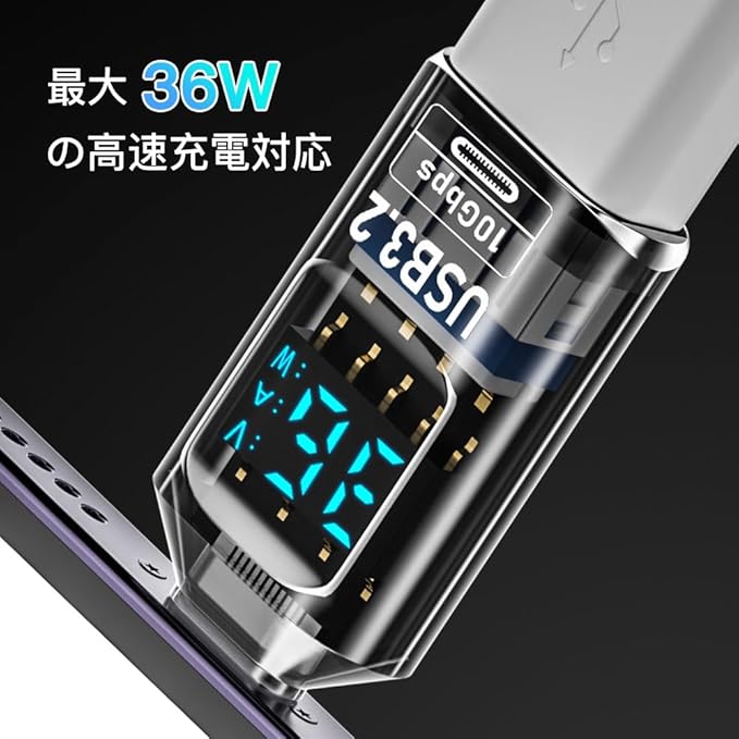 本製品を使えばLEDディスプレイ表示で充電状態が一目でわかります。電圧や電流のデジタルアダプターと比較し て、電力のデジタルは充電速度をより直接的にそして理解しや すいように教えてくれます。