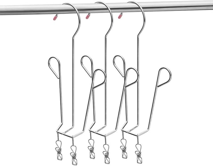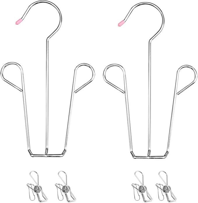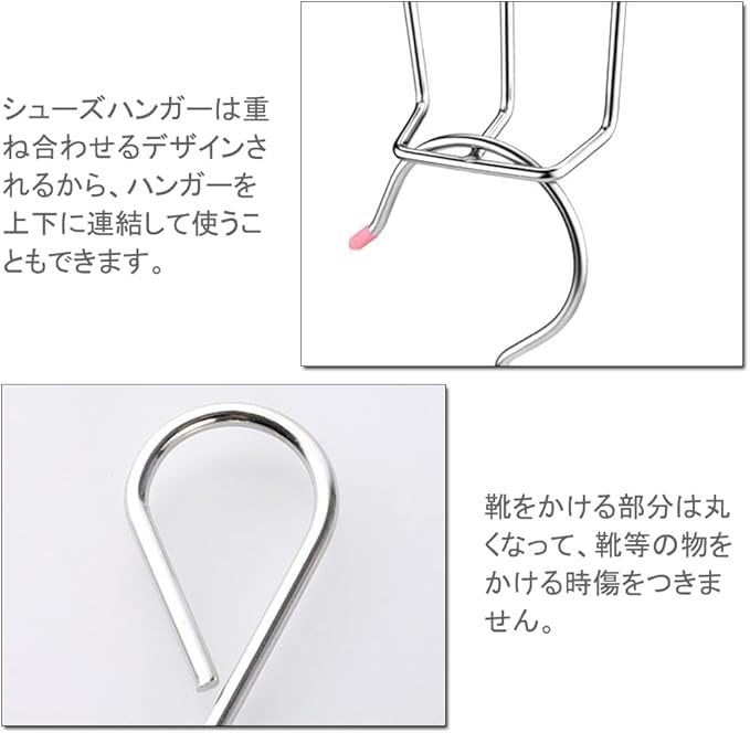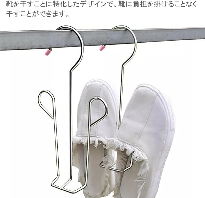 靴ハンガー 靴乾燥ラック シューズハンガー 2本セット クリップ付き ステンレス製 防風 滑り止め 空間節約 吊り干し シューズ水切り