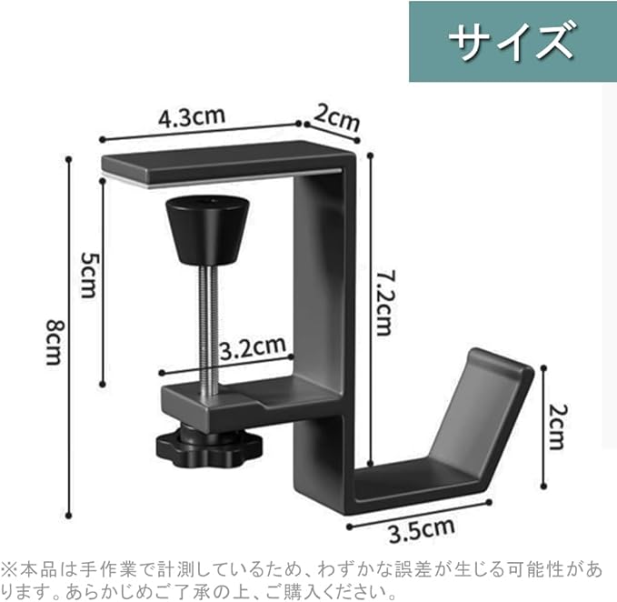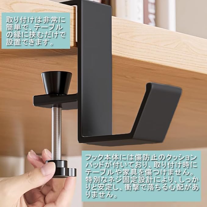 テーブルフック 1個セット ネジ式 クランプ ン掛け 装着簡単 調節可能 耐荷重10KG フックずり落ち防止 キッチン 洗面所 デスク 机 鞄掛け ヘッドホンスタンド 荷物かけ (ブラック-1, 7.7*8CM)