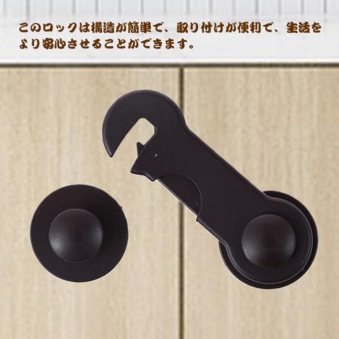 ドアロックストッパー キャビネットロック 6個入り 回転式 穴あけ不要 使用簡単 家具を傷つけない ドア開け防止 いたずら防止 ドア キャビネット 引き出し 食器棚 戸棚 扉 窓 安全ロック対策 (コーヒー色)