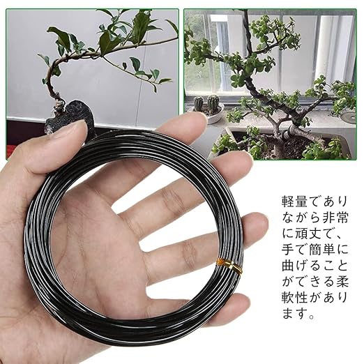 ▷素材:この盆栽線は延性に優れたアルミニウム材料を採用しており、光熱、湿気などの天候下でも腐食摩耗しにくいため、優れた耐久性を持っている。