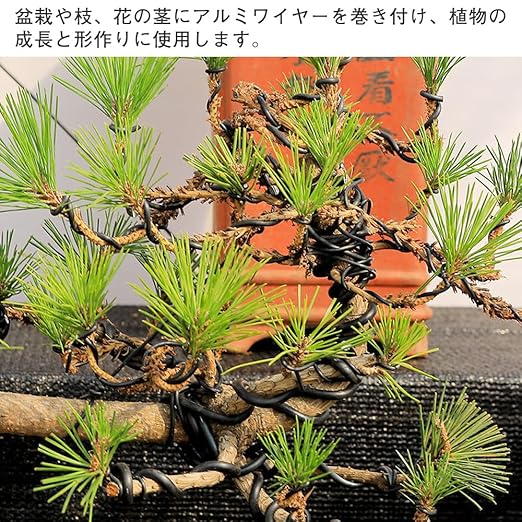 ▷使用方法:盆栽や枝、花の茎にアルミワイヤーを巻き付け、植物の成長と形作りに使用します。