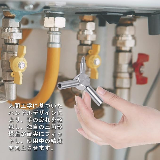 4.三角形と中央の六角形デザインにより、グリップ感に優れ、回転操作がしやすく、作業効率を高めます。