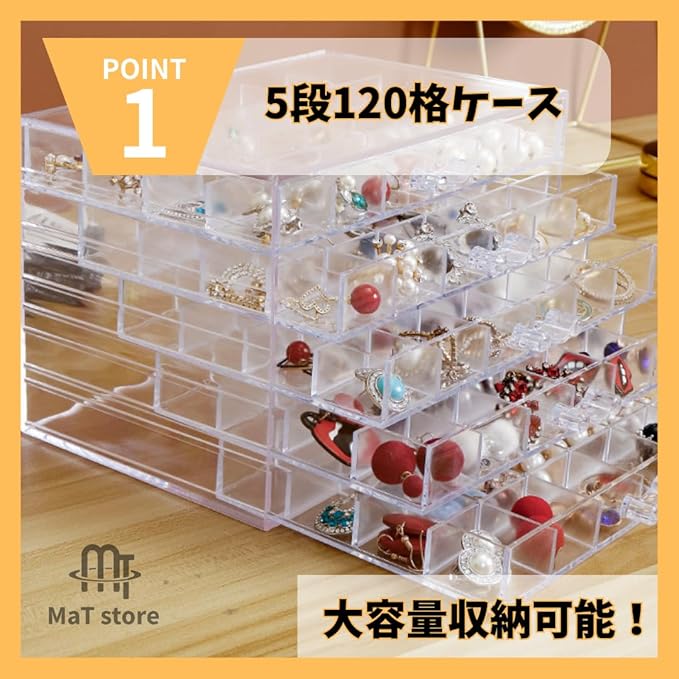 MaT store ビーズケース アクセサリーケース 小物 小分け パーツケース 収納 5段 120仕切り