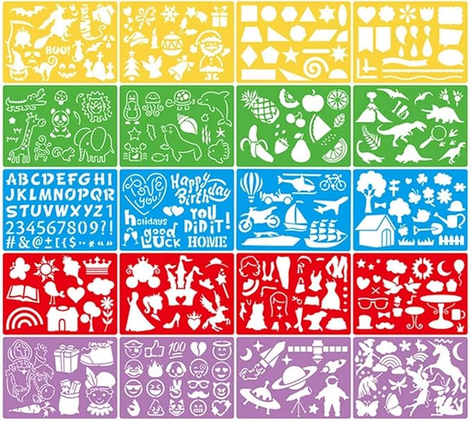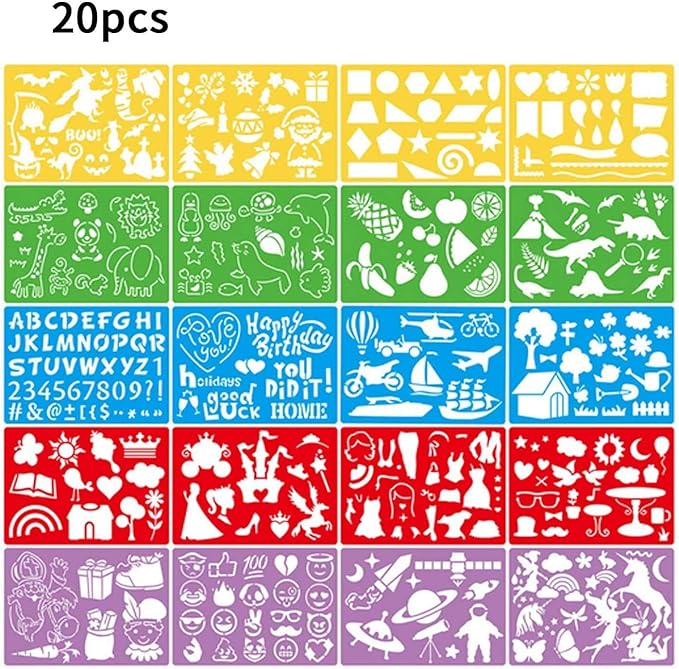 VEYLIN ステンシル 描画テンプレート 描画テプレート (20枚入:21 15cm) 手帳用 絵図
