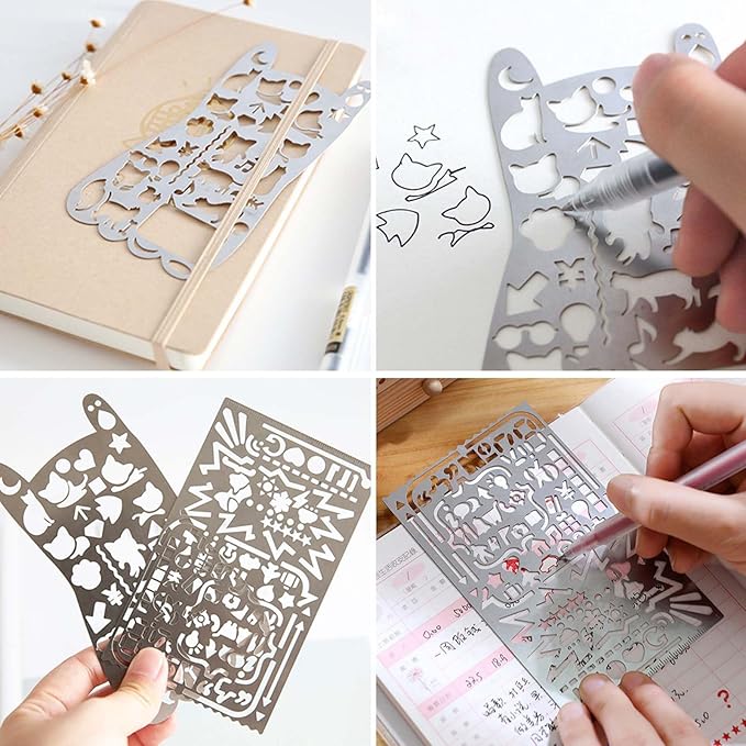 【幅広い用途】金属 テンプレート定規は落書き、ペイント、ハンドブック、マーキング、DIY制作などの分野に適しています。 勉強、仕事、創作のいずれの場合でも、私たちは利便性を提供し、あなたの生活をより便利で効率的にすることができます。