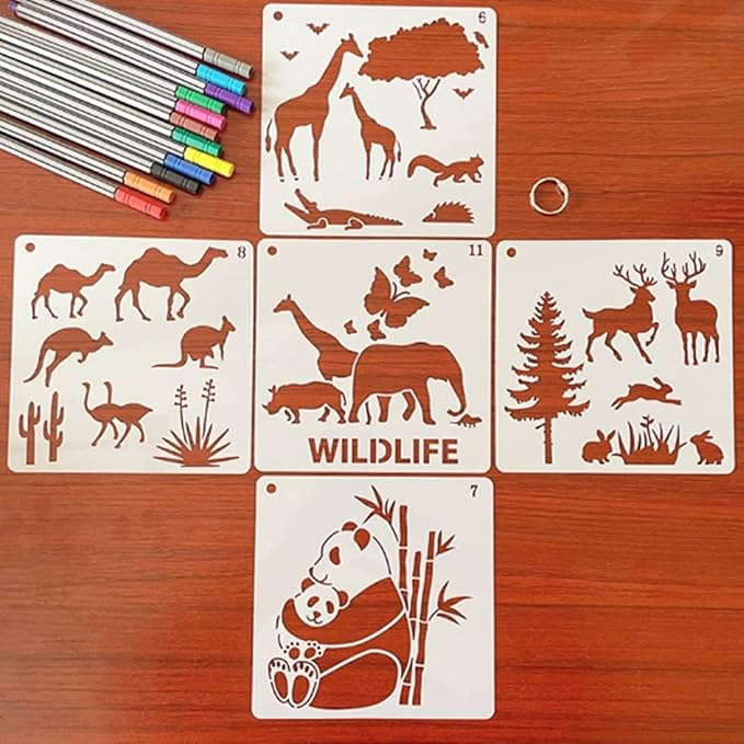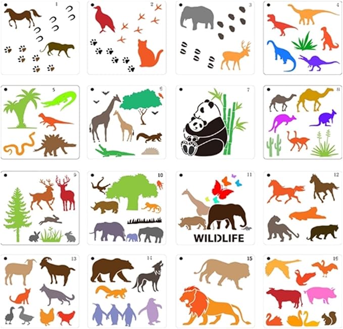 限定商品動物 ステンシルシート 16枚セット かわいい アニマル 描画テンプレート 手帳 塗り絵 手作りアルバム に (動物 アニマル 16枚)