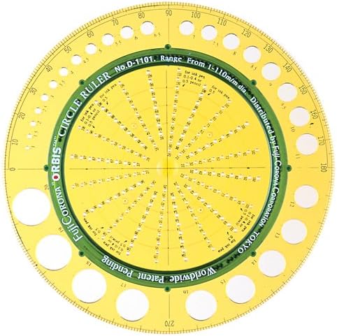 サークル定規は1mm~110mmまでの円が、1mmピッチで(1~9mmまでは0.5mmピッチ)コンパスより早く、正確に簡単に描くことができます。