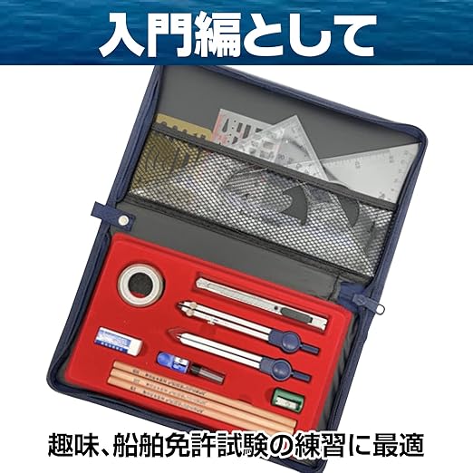 Saki&Masa 製図 海図15点 セット コンパス 三角定規 船舶 練習用