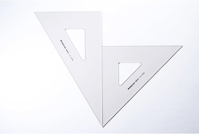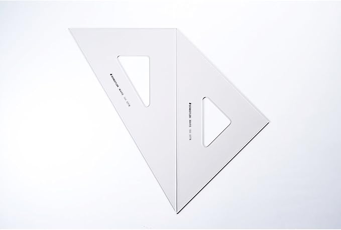 定規側面の鏡面加工でスムーズな描線をサポートする45 ・60 ペアセットのアクリル製図用三角定規。〈br〉インクエッジ付きで製図ペンも使用できます。ステッドラーはドイツを代表する製図HOTで、世界中に数多くの愛用者がいるトップ限定商品です。