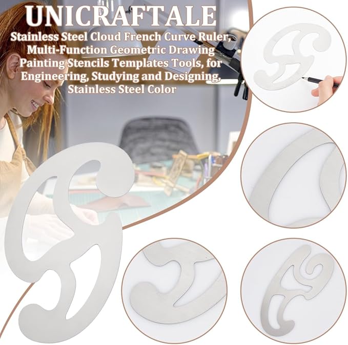 UNICRAFTALE ステンレススチール フレンチカーブ定規 製図 描画テンプレートツール 多機能 コミック テンプレートツールセット プロフェッショナルパターン作成 描画定規 木工用