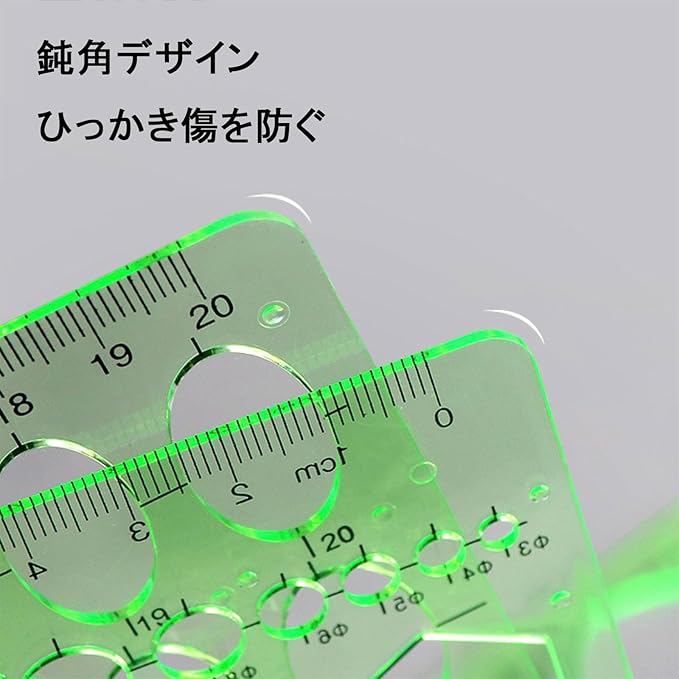 テンプレート 定規 円定規 三角定規 製図用 テンプレート 手帳用 丸定規 曲線定規 透明 4本 グリーン