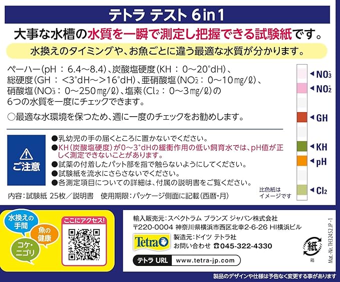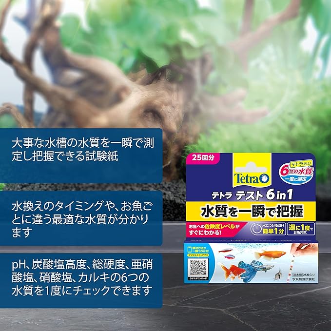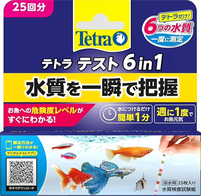 テトラ (Tetra) テスト 6 in 1 試験紙 25枚 水槽の水質を一瞬で測定 スマートフォンアプリ対応で誰でも簡単水質測定ができる 総硬度 硝酸塩 亜硝酸塩 塩素 炭酸塩 PH