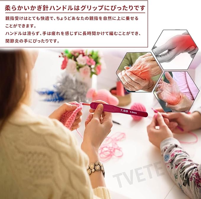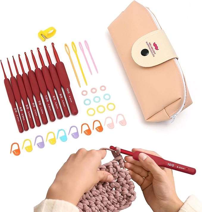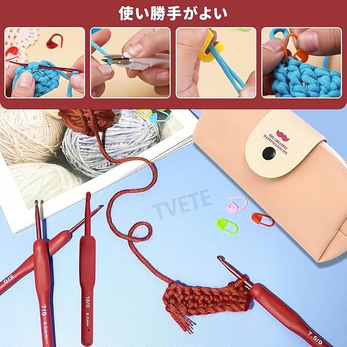 【商品内容】:かぎ針セットには、2.0mm~6.0mmの赤いハンドルのかぎ針9本、マーキングバックル10個、マーキングサークル9個、糸カッター1個、2サイズの縫合針4本、携帯用バッグ1個が含まれています。商品は全部で9種類、合計34点あります。フックは滑らかでバリのない表面と快適なグリップを備えており、手の疲労を軽減します。