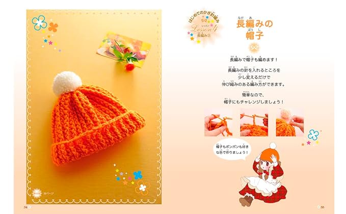 太めの編み針と太めの糸ではじめてでもスイスイ編める。かんたんにできるマフラーやモチーフで、編む楽しさを味わえます。