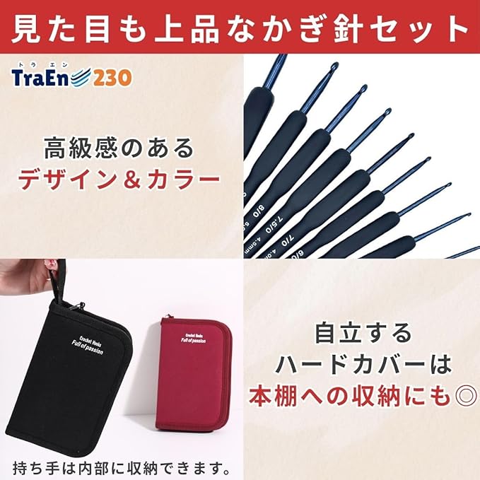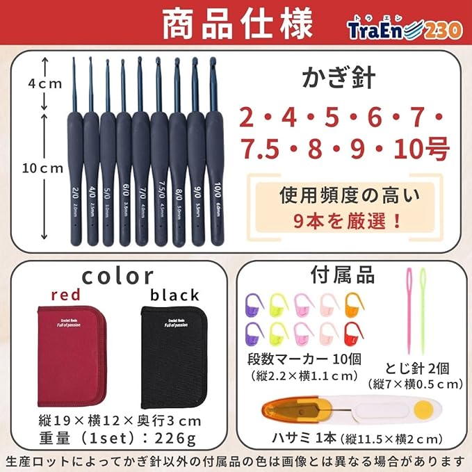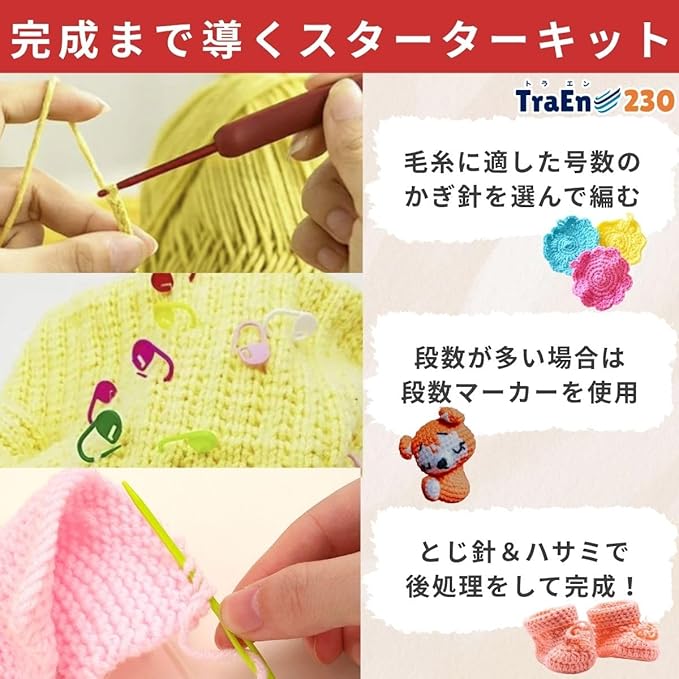TraEn230 かぎあみ キット 初心者 かぎ針セット かぎ編み 編み物 かぎ針 かぎ針編み 編み針 6号 (レッド)
