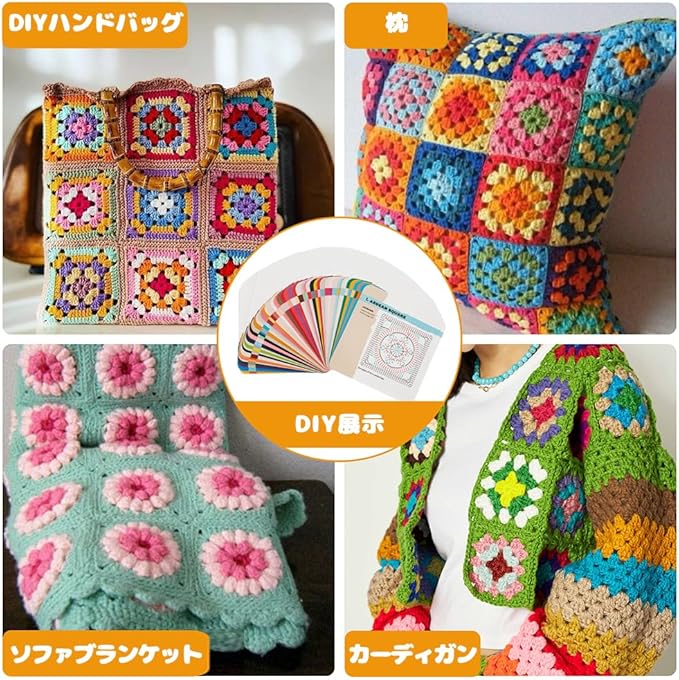 YAARUJEE グラニースクエアカード 50枚セット 編み物キット 初心者向け かぎ針編みパターンブック 手作りガイド(カード・説明書のみ、毛糸・編み針含まず)