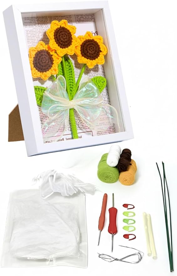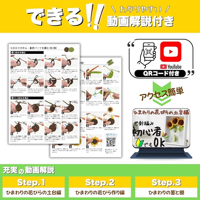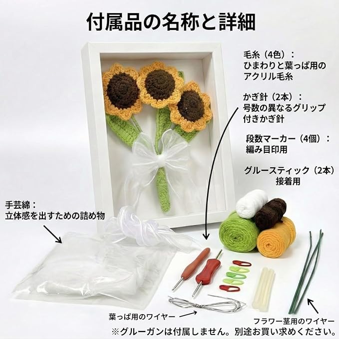 編み物キット ひまわりの編み物 【日本語説明書・動画解説付き】 かぎ針編み 手編みセット 置物 ニットフラワー インテリア 飾り ギフト 玄関飾り