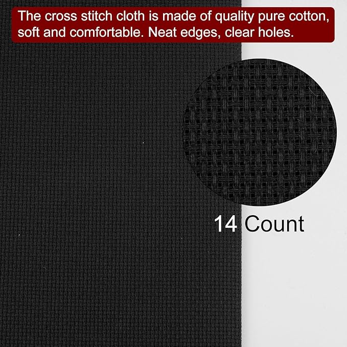 限定 14カウント クロスステッチ 布クロスステッチ 生地 クラシック リザーブ刺繍布 クラフト刺繍 ハンドメイド針仕事 DIY手芸用 ブラック 500 x 700mm