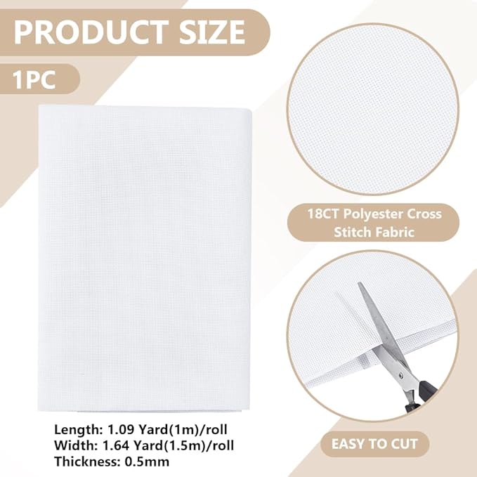 サイズ詳細:18ctコットンクロスステッチ生地1枚をお届けします。長さ約1m/39.37インチ、幅約1.5m/59.05インチ、厚さ0.5mm。様々な日常の裁縫ニーズを満たすのに十分なサイズです。