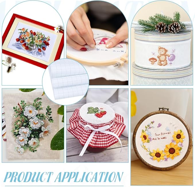 幅広い用途:この純綿クロスステッチ生地は、様々な手芸プロジェクトに適しています。伝統的なクロスステッチに加え、編み物やかぎ針編みにも使用でき、装飾画、クッション、カーテン、ソファの飾り、コースター、テーブルクロス、キーホルダーなど、様々な手工芸品を作ることができます。