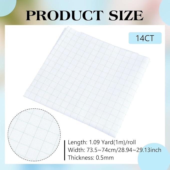 サイズ詳細:長さ100cm/39.37インチ、幅74cm/29.13インチ、厚さ0.5mmの14カウントクロスステッチ生地をお届けします。クロスステッチデザインのニーズを満たすことができます。