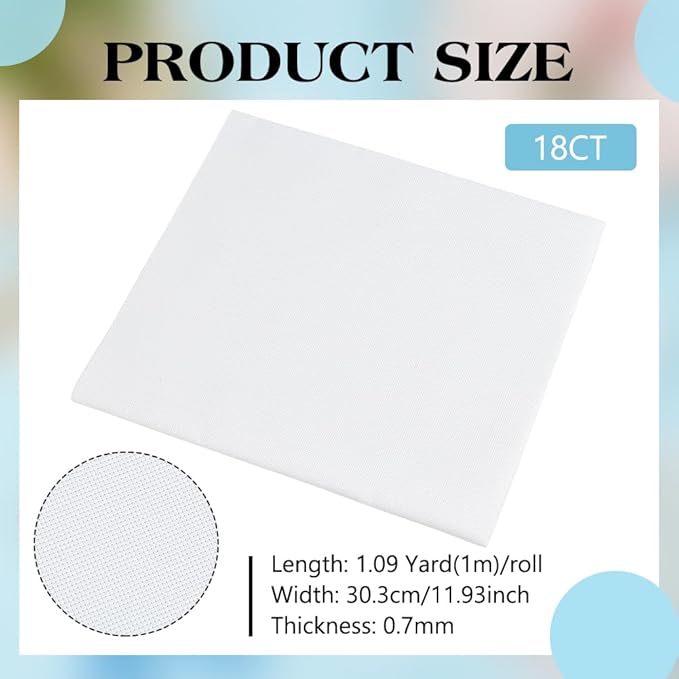 サイズ詳細:18カウントのクロスステッチ生地をお届けします。長さ1m/39.37インチ、幅30cm/11.93インチ、厚さ0.7cmで、クロスステッチデザインのニーズを満たします。