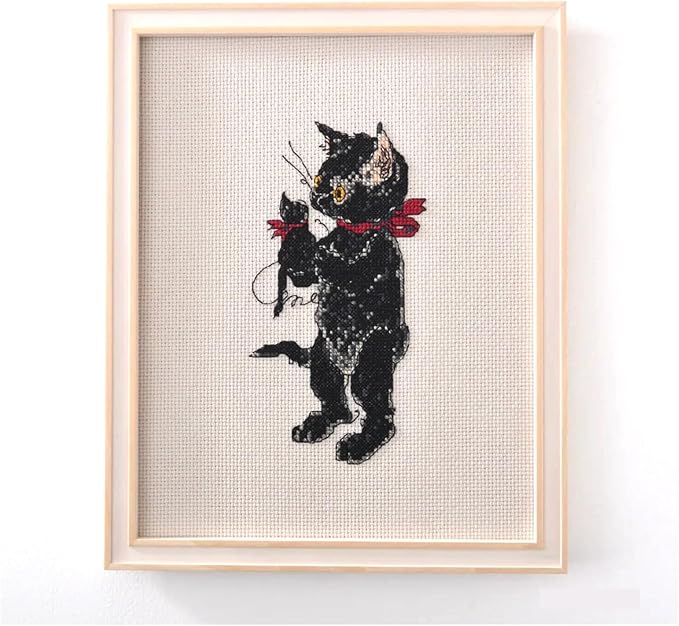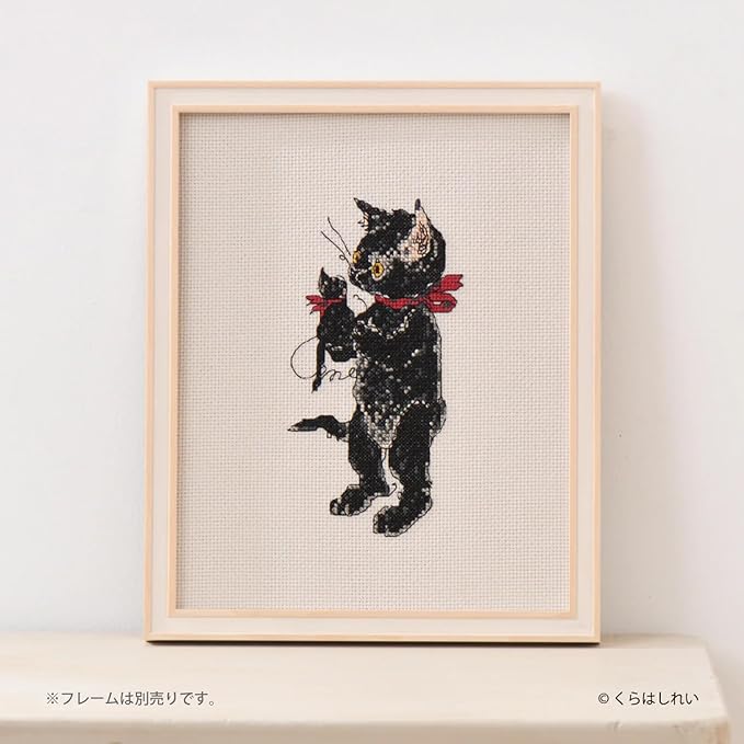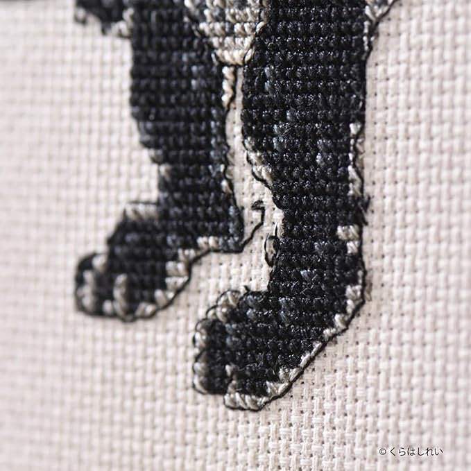 くらはしれいさんのイラストがクロスステッチキットになりました。幸せな刺しゅうの時間をどうぞお楽しみください。 まるで絵本の1ページから抜け出したかのような、愛らしい黒猫のシルエット。繊細でかわいい作品です。 赤いリボンがよく似合う黒猫をアイーダの生地に刺しゅうをします。