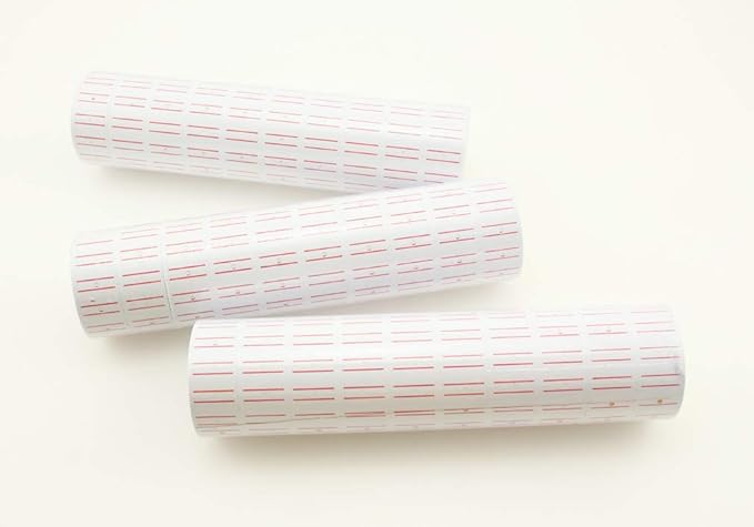 この値札シールセットは、ラベラーMX-5500の交換用として完璧です。30巻セットで計12000枚の大量のシールが同梱されており、標準的な上下に赤線の入ったタイプです。各シールのサイズは12mm 21mmで、ペーパー製です。このセットには、小槌型のこずちも同梱されており、価格表示や値引きなどのラベリング作業を効率化します。ラベラー本体は別途必要です。