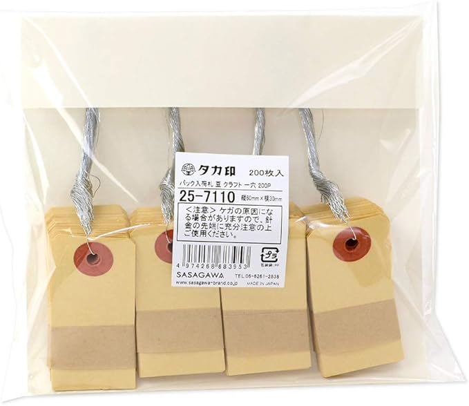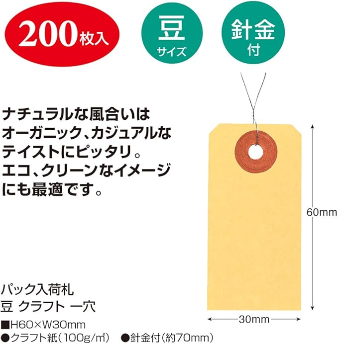 ササガワ 店舗用品 パック入りクラフト荷札 豆 一穴 針金付 200枚 25-7110