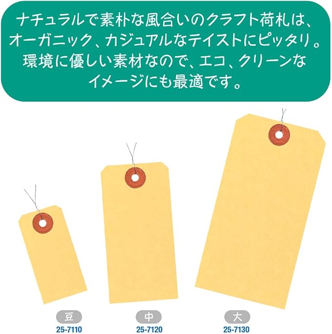 ナチュラルで素朴な風合いのクラフト荷札は、オーガニックやカジュアルなテイストにピッタリ!