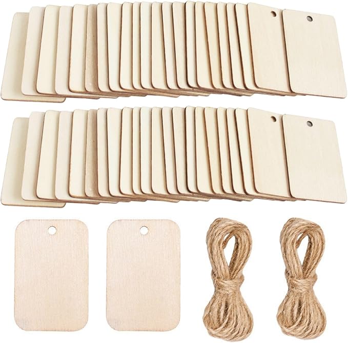 限定商品 ボトルネームプレート ボトルキープ 木材 タグ ボトル 木片 長方形 チップ 木材タグ 長方形板 ひも付き 50個入