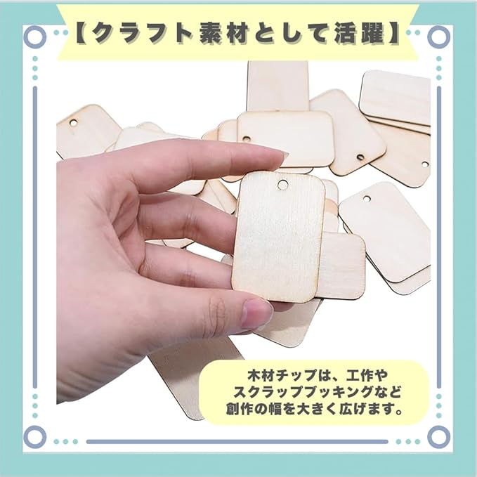 【天然素材のやさしさ】天然木を使用したタグは、温もりのあるナチュラル感で大切な贈り物を彩ります。【DIY心をくすぐる】はんだごてや絵の具で自由にアレンジ可能。世界に一つだけの木製タグが作れます。【ギフトがもっと特別に】手書きのメッセージを添えるだけで、心のこもったプレゼントに早変わり。【クラフト素材として活躍】木材チップは、工作やスクラップブッキングなど創作の幅を大きく広げます。