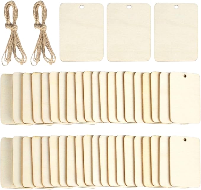 geneX タグ ボトルネームプレート ボトルキープ 札 ボトルネーム 木材タグ ボトル 長方形 チップ 木材チップ プレート 下げ札 カード ひも付き 50個入