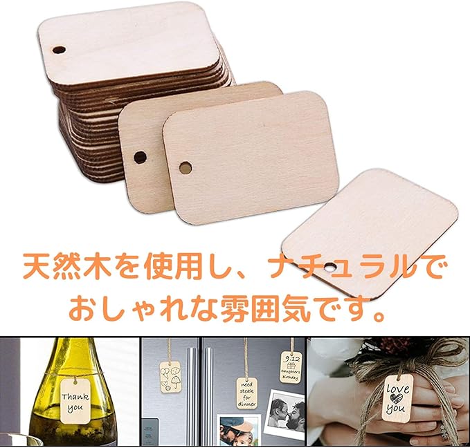 【万能な木札】ボトルネームやプレゼント包装、飾りつけに最適な木札。カジュアルなシーンにもぴったり。
