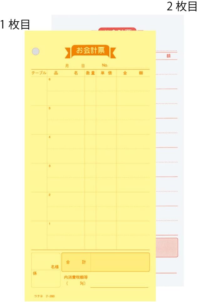 コクヨ(KOKUYO) お会計票 5冊パック ノーカーボン2枚複写 テ-280NX5
