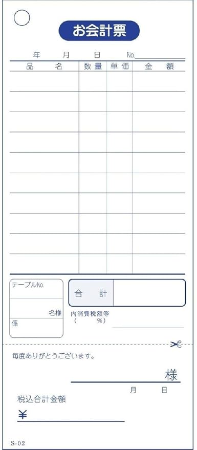 商品名:業務用 お会計表(会計伝票) 既製品/品番:S-02