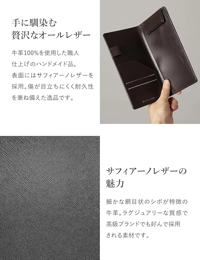 素材/材質:表面の革:サフィアーノ(牛革) 内装:牛革(共色)
