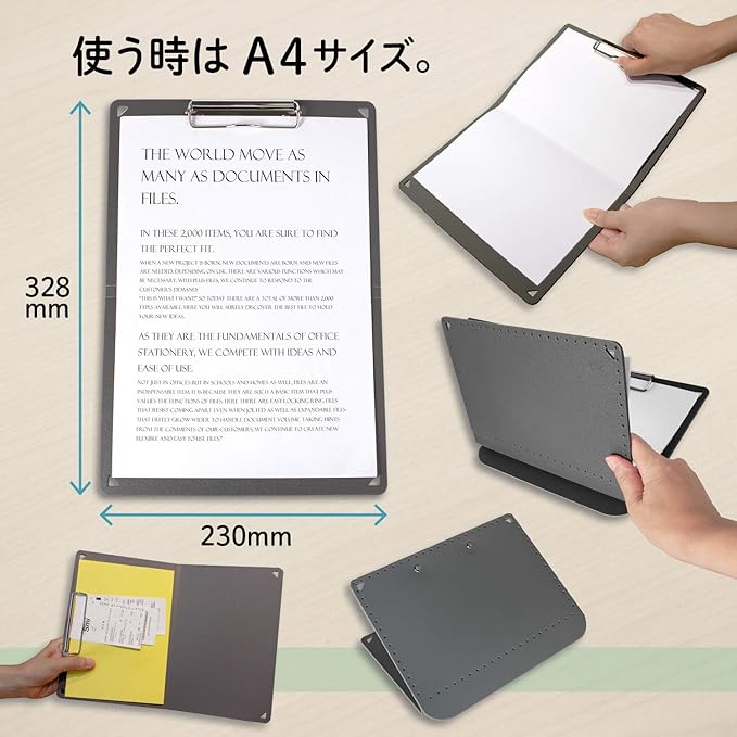 使う時はA4サイズ。折りたたむとA5サイズになるクリップボード