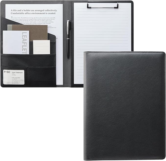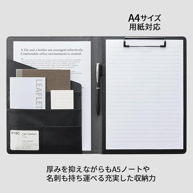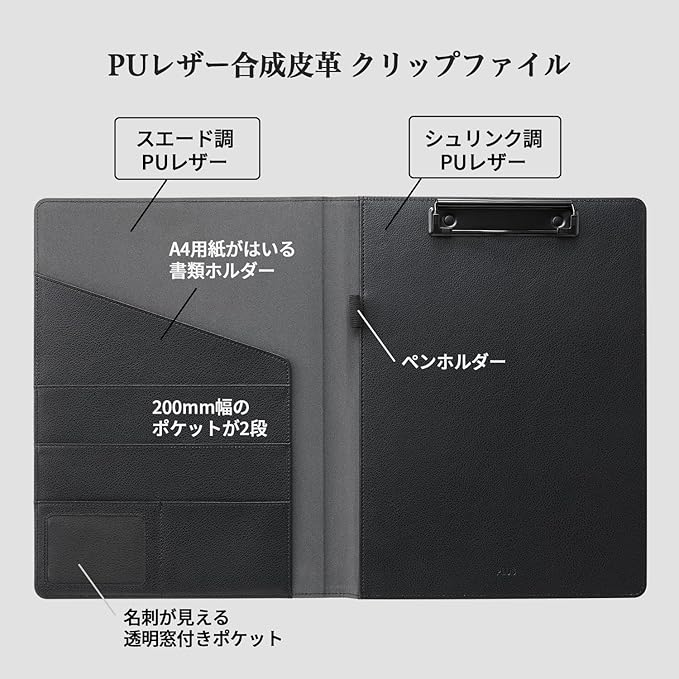プラス バインダー A4 クリップボード クリップファイル 2つ折り PUレザー PU合成皮革 多機能 ブラック FL-506CP 83-170