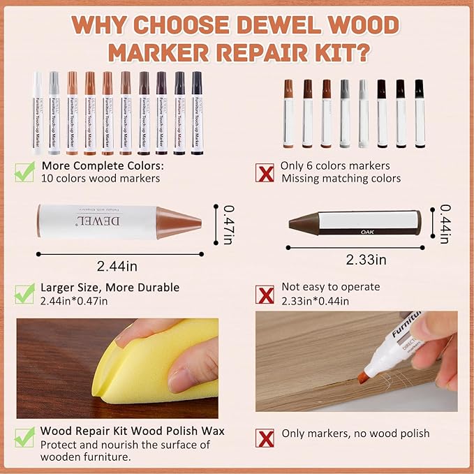 【セット内容】 ➤補修ペン*10、補修棒*10、芯削り器*1、ウッドワックス*1、スポンジ*1、クリーンワイパー*1、へら*1、説明書。➤ 直射日光や高温になる所での使用 保管はしないで下さい。➤何かご不明な点がございましたら、いつでもお気軽にお問い合わせください。お客様にご満足いただける解決策を提供します。
