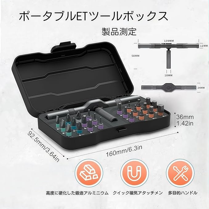 プロ仕様の多分野対応:電子機器組立、家具調整、家電修理、自転車整備など、プロフェッショナルからDIY愛好者まで幅広く活用可能。コンパクト設計で作業現場や家庭の限られた収納空間にも最適です。