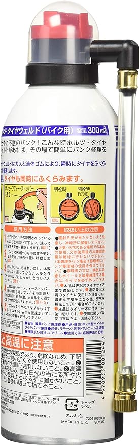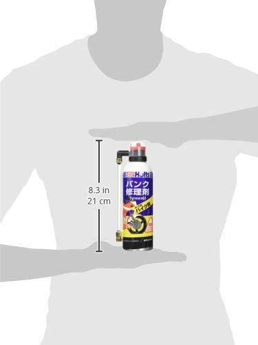 *使用前の注意 ・総重量2トン以上の車には使用できません。・タイヤ接地面以外の穴、サイド面、大きな穴(目安:約直径3m/m)、亀裂、裂けたチューブ、タイヤ及びホイールの結合部が外れている場合は効果がありません。・摩耗、劣化により弾力性が失われているタイヤ、極端な扁平タイヤに使用された場合にも、十分な効果が得られないことがあります。*これら以外にも内部の裂傷等、パンクの状態によって修理ができないこともありますので、予めご了承ください。・本品は1回のパンクに対する使い切りタイプで、残った液の再利用はできません。・タイヤが膨らまない場合は走行せず、すみやかにタイヤ交換してください。