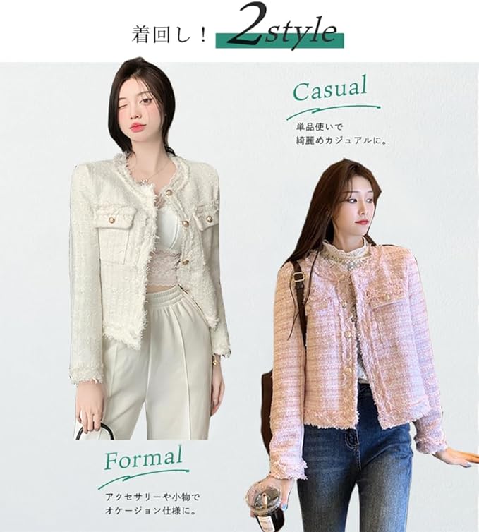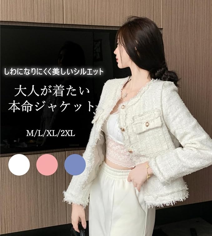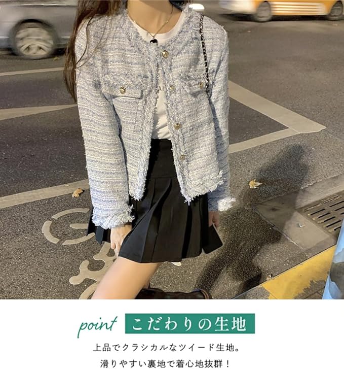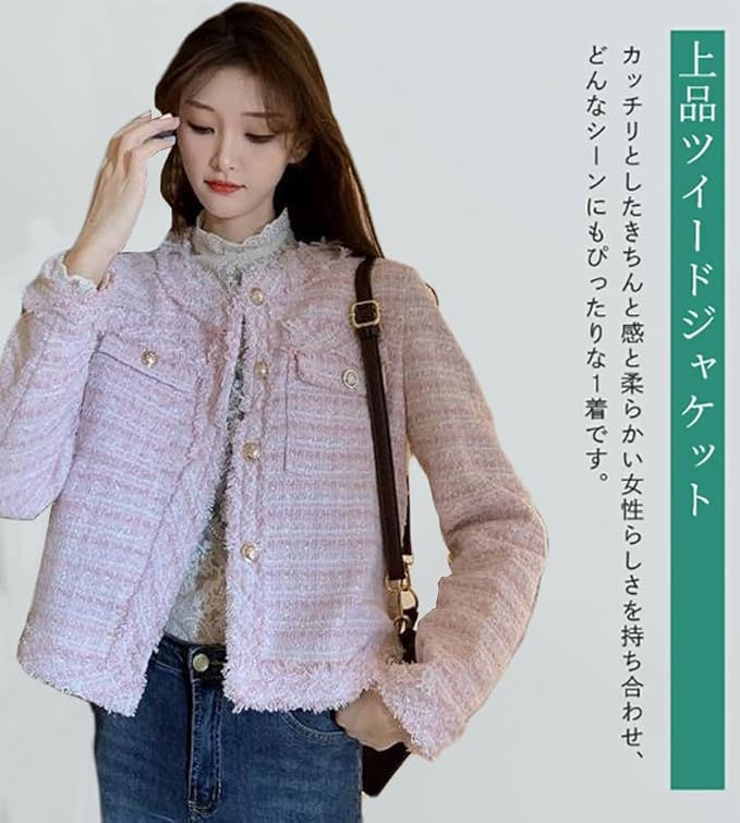 [Muzly] ジャケット ツイード ノーカラー アウター レディース カジュアル フォーマル 卒業式 入学式 スーツ 春 秋 冬