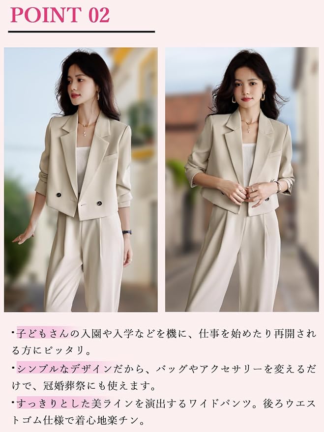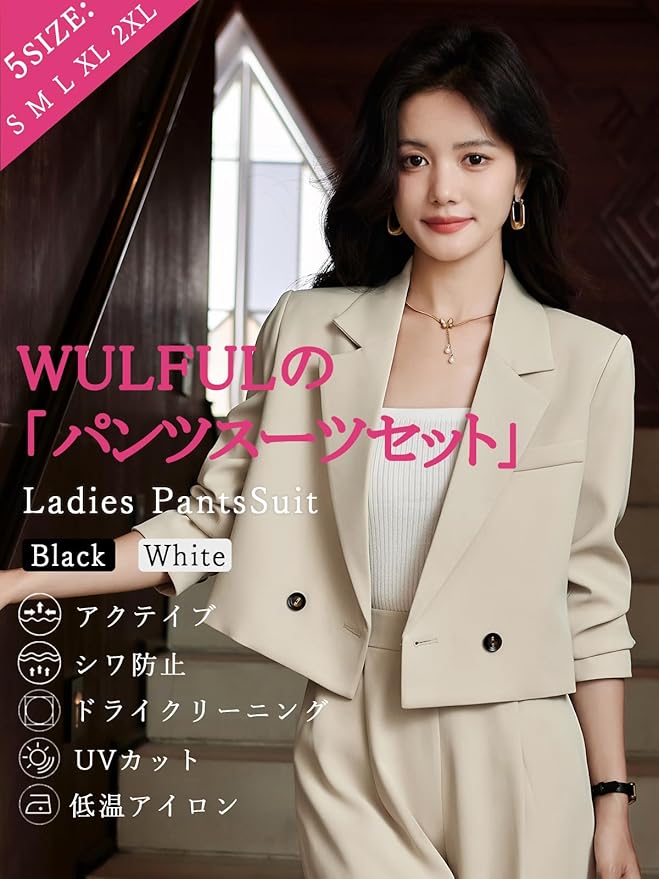 [WULFUL] スーツ レディース パンツスーツ セットアップ 2点セット 通勤 入園式 春 秋 冬 入学式 卒業式 面接 冠婚葬祭 着痩せ 洗える ワイドパンツ オフィススーツ フォーマル