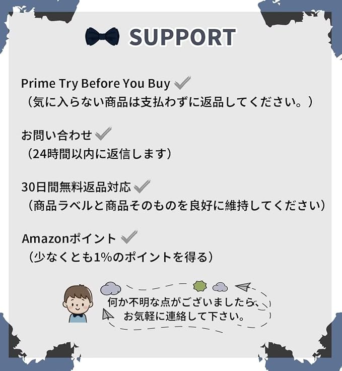 【蝶ネクタイ】ネクタイは頭からかぶって襟の下に隠すだけで完成するので楽ちんです。 ゴム紐で苦しくないよう配慮したお作り。 留め具はホックなので簡単です。