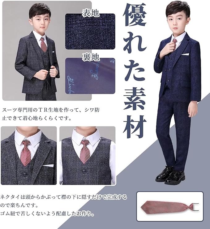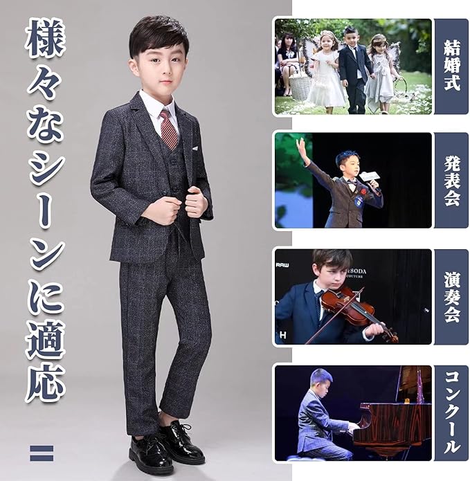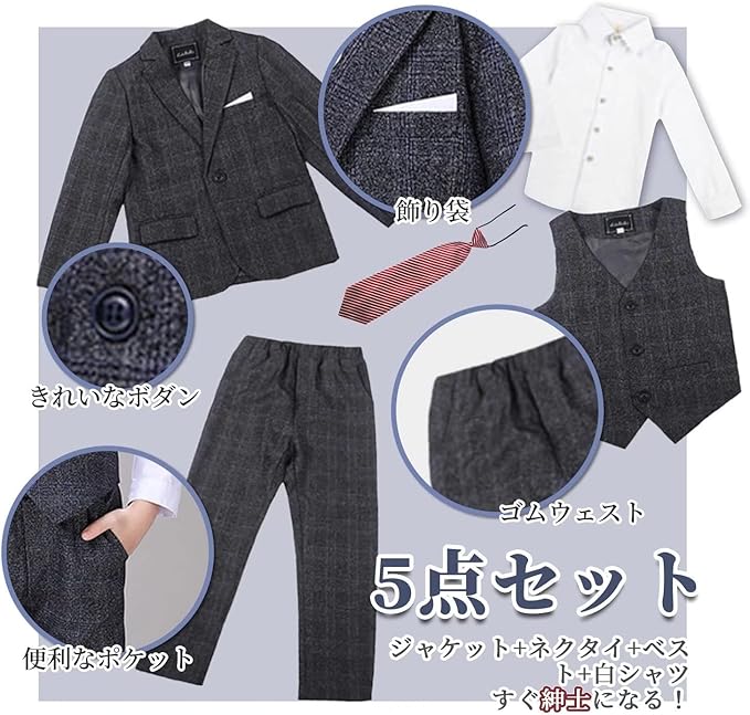 限定商品男の子 フォーマルスーツ 子供 スーツ ボーイズ チエック柄 キッズ 千鳥柄 5点セット 発表会 七五三 結婚式 かっこいい 入学式 卒業式 90~150